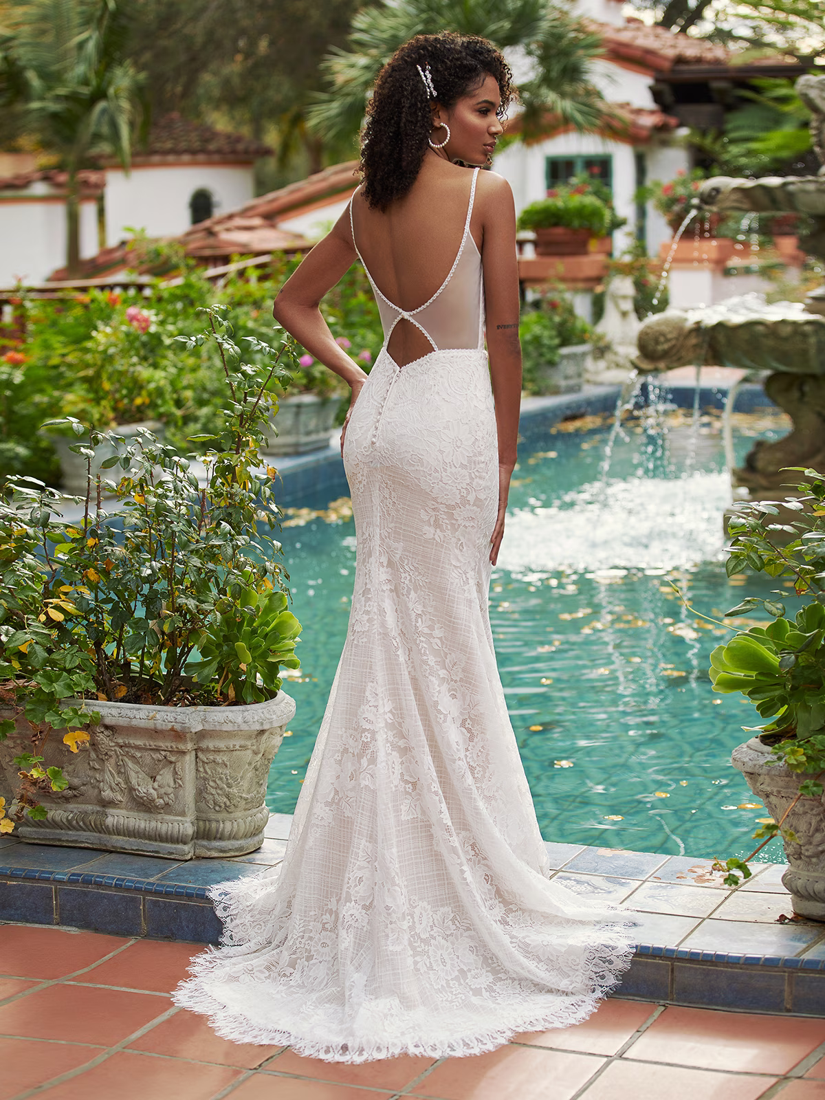 Consider a classic and refined tulle mermaid wedding dress with romantic appeal. With your unique intuition and timeless style, you will likely be drawn to soft fabrics, lace and a classic silhouette. A fitted bodice of embroidered lace and a sweetheart neckline will compliment your traditional sensibilities while providing a subtle touch of drama and effortless sophistication.