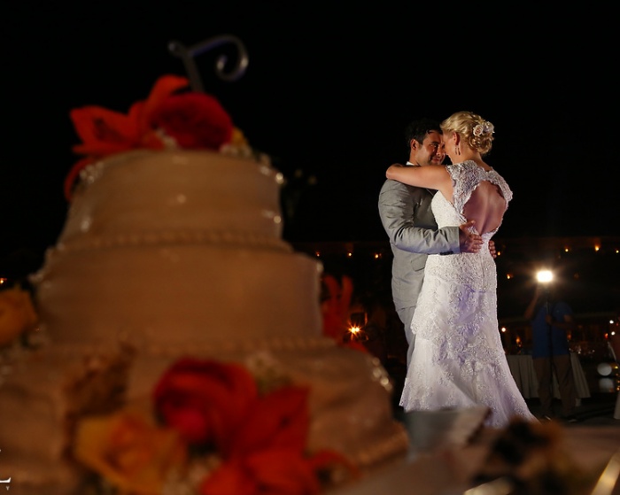 Val Stefani bride, Holly looked absolutely stunning in style EVERLY made with layers of venise lace. This trumpet silhouette accented her feminine curves beautifully and gave her the perfect amount of movement for her gorgeous, outdoor beach wedding. Del Sol photography perfectly captured Holly's glowing beauty next to her new hubby wearing a snazzy grey suit and blue tie. Holly's up-do hairstyle paired with delicate dangling earrings allowed the keyhole back and lace cap sleeves to take center stage on this beautiful wedding gown. From beginning to end and head to toe Holly and her partner enjoyed a perfect beach day.