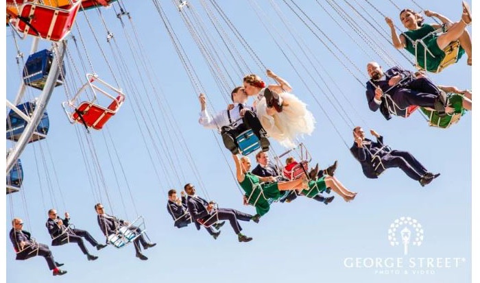 No doubt you’ve seen some funny bridal party pictures on Pinterest or wedding sites. If your group is into it, why not take several classic photos and humorous ones? The groomsmen showing off their silly socks. The “let’s party” jump. The explosive toast with Champagne. Perhaps the location is epic--high above the air in amusement park swings or at a zoo. The possibilities are endless and you know your friends best to know what kind of wedding party photos they could be into.