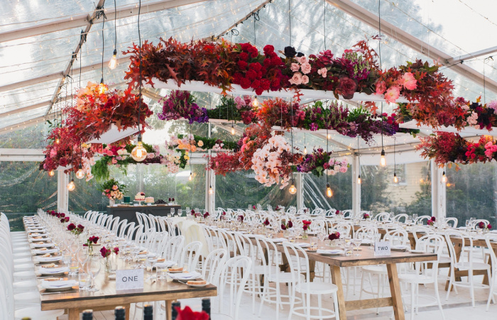 For a more luxurious decoration, consider hanging a floral chandelier at your wedding ceremony or reception. Nothing says spring like a hanging installation of fresh flowers. Include tulips, peonies or any other choice of seasonal flowers to embrace the season and its beauty. The fresh scent of real flowers will have your guests raving, and you can allow them to take home the flowers to reuse as decor- a great way to be sustainable and eco-friendly.