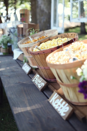 3. Popcorn: You may be thinking popcorn is boring, however we know it doesn't have to be! These adorable barrel containers add a rustic fall feel to a treat so simple. Also, feel free to add unique popcorn flavors to your popcorn bar such as caramel, cheese, and jalapeno! We promise your guests will have a blast filling their treat bags with different delicious flavors of popcorn!