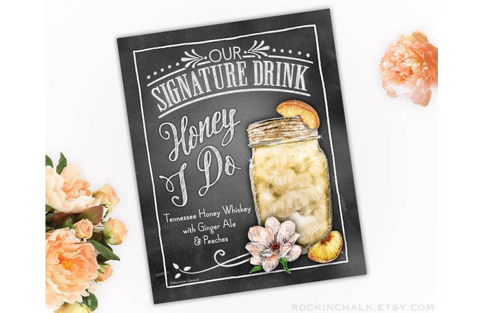 Or go crazy with super-cute wedding cocktail names. Here are a few of our favorites from Etsy printable food and drink signage company, Rockin Chalk: