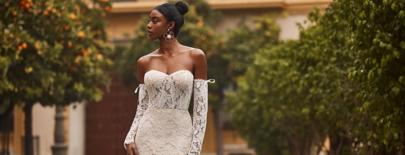 Whether you’re a boho bride searching for a heavily embellished gown or you’re searching for a more minimalist look with simple elegance, our Simply Val Stefani collection has it all. Full of lace and soft, flowy fabrics, these bohemian bridal gowns are sure to suit your personal style. Contact your local authorized Val Stefani retailer to arrange a showing or schedule a fitting today!