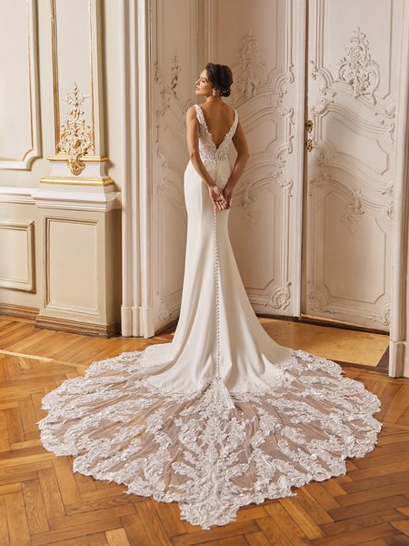 Lace and Crepe Mermaid Gown with Semi-Cathedral Train