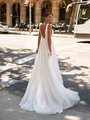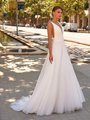 Sip bubbly and dance the night away in the Dakota, a deep-V satin wedding gown with a pearl embellished tulle skirt. If the plunging V-neckline and nude illusion panels haven’t already stolen your heart, the clean lines of this classic A-line silhouette will. On your wedding day, you deserve to feel like an icon as you bask in the glow of true love. The details on Dakota Style S2231 from Simply Val Stefani make that possible. Minimalist in style but never demure, Dakota features upscale accents such as wide straps, crisp lines, and a deep V-back. The drop waist adds a sleek, modern feel. Finally, for the touch of glam you’re looking for on your wedding day, this A-line wedding dress is finished with glistening beaded pearls sewn on the tulle skirt.