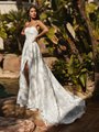 The Simply Val Stefani Breeze wedding dress is made for the bride who wants a fairytale-inspired look that exudes modern-day romance. In an A-line silhouette to flatter all body types, this exquisite gown features a strapless, fitted bodice with a straight neckline, ruched details, and an open back. It’s detailed with a natural waist, a sweep train, and a front slit so that you can show some leg while walking down the aisle or spinning on the dance floor. The silhouette is spectacular, but it’s the unique choice of fabrication that makes this dress something extra-special. The Breeze gown is made from floral jacquard organza fabric, so it’s rich with texture and extra-romantic, a perfect choice for the bride that wants to look and feel simply stunning throughout every moment of her wedding day. To complete the look, we’ve added a center back zipper concealed by a row of covered buttons that trail the entire back length all the way to the end of the sweep train. It’s a gorgeous option for any bride, whether she’s hosting an enchanted fairytale wedding in the woods, a black-tie affair in a grand ballroom, or a traditional wedding at a lavish estate. This design comes in one shade: ivory.